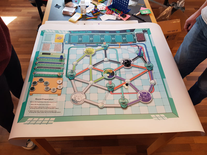 After receiving the elements from the printshop. We organized ourselves to efficiently prepare the 35 sets of games in order to be as fast as possible on the final day.